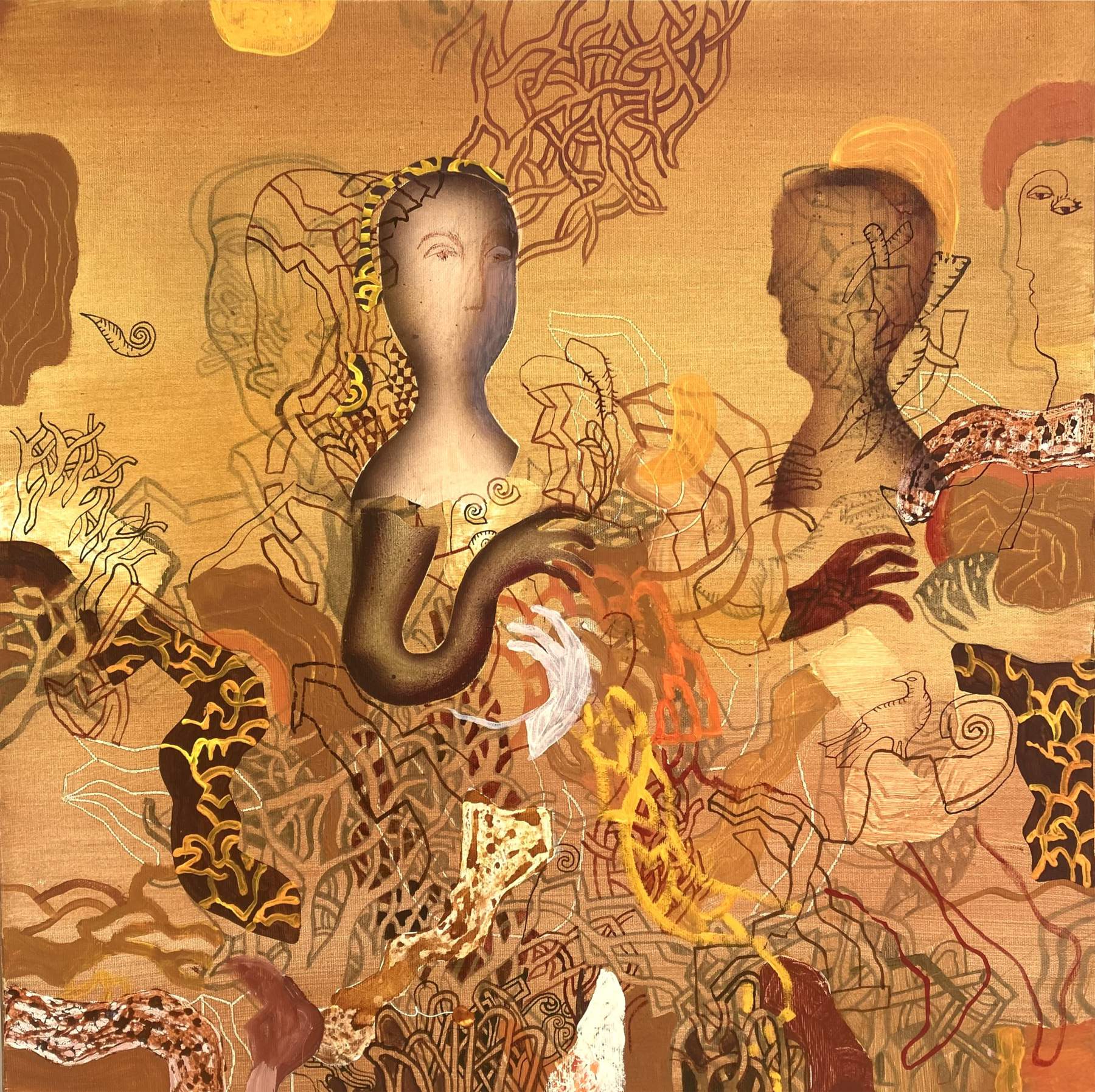 Daniela Krajčová – Nedeľa, kombinácia techník na plátne, 60 x 60 cm, 2025