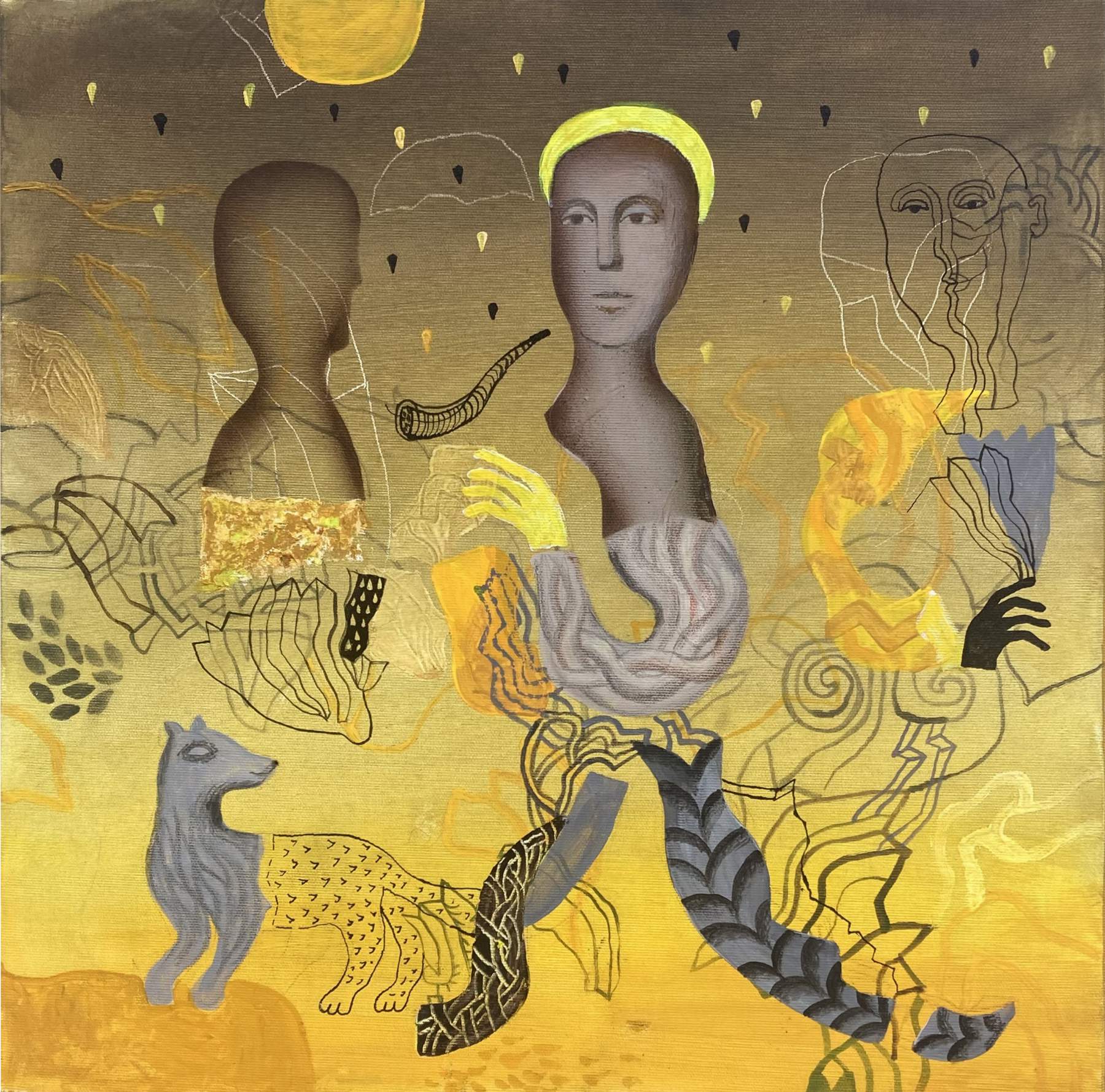 Daniela Krajčová – Prechádzka, kombinácia techník na plátne, 50 x 50 cm, 2025