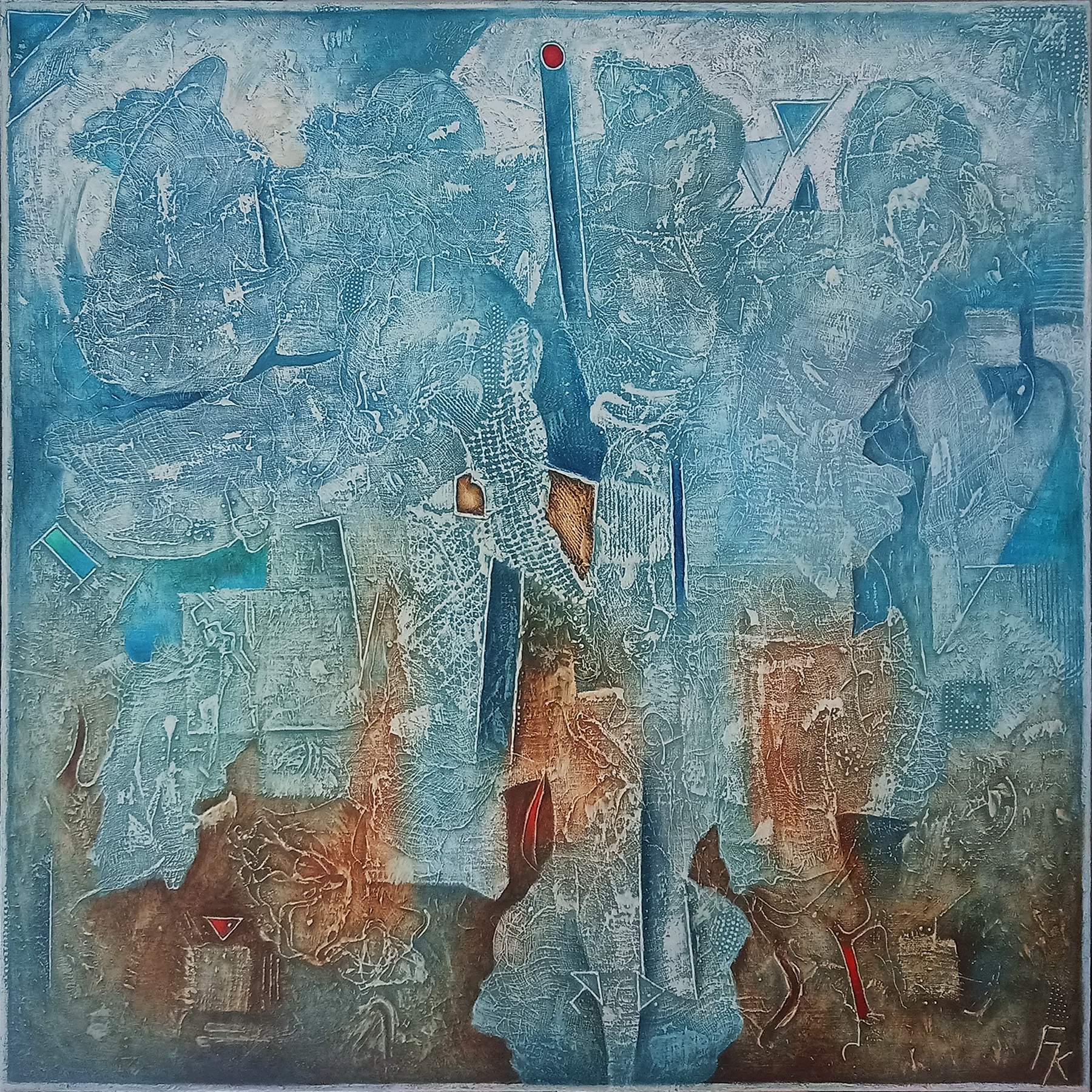 Fero Kučo – Cesta, olej a špeciálna technika, 90 x 90 cm