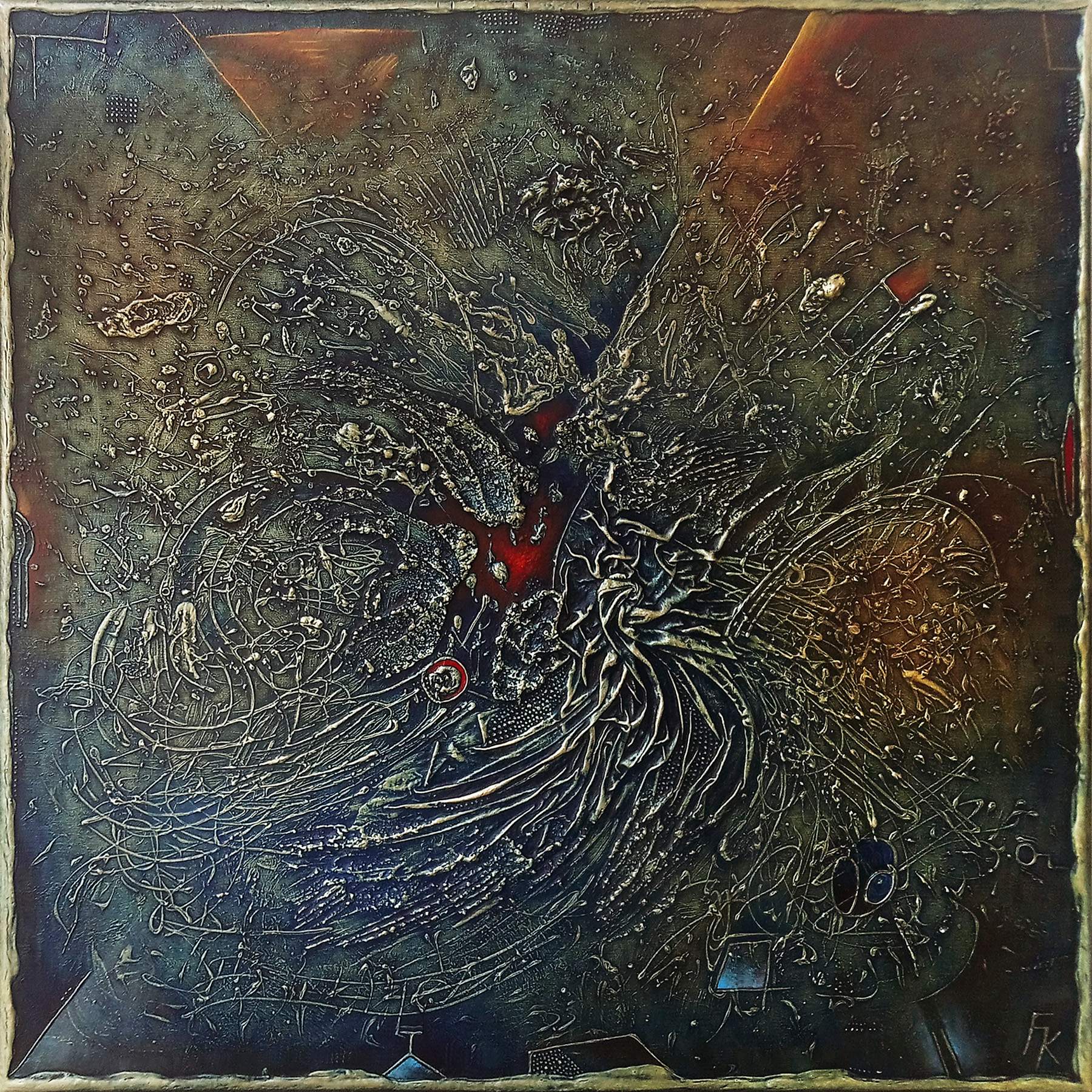 Fero Kučo – Len okamih, maľba-reliéf, olej a špeciálna technika na plátne, 95 x 95 cm
