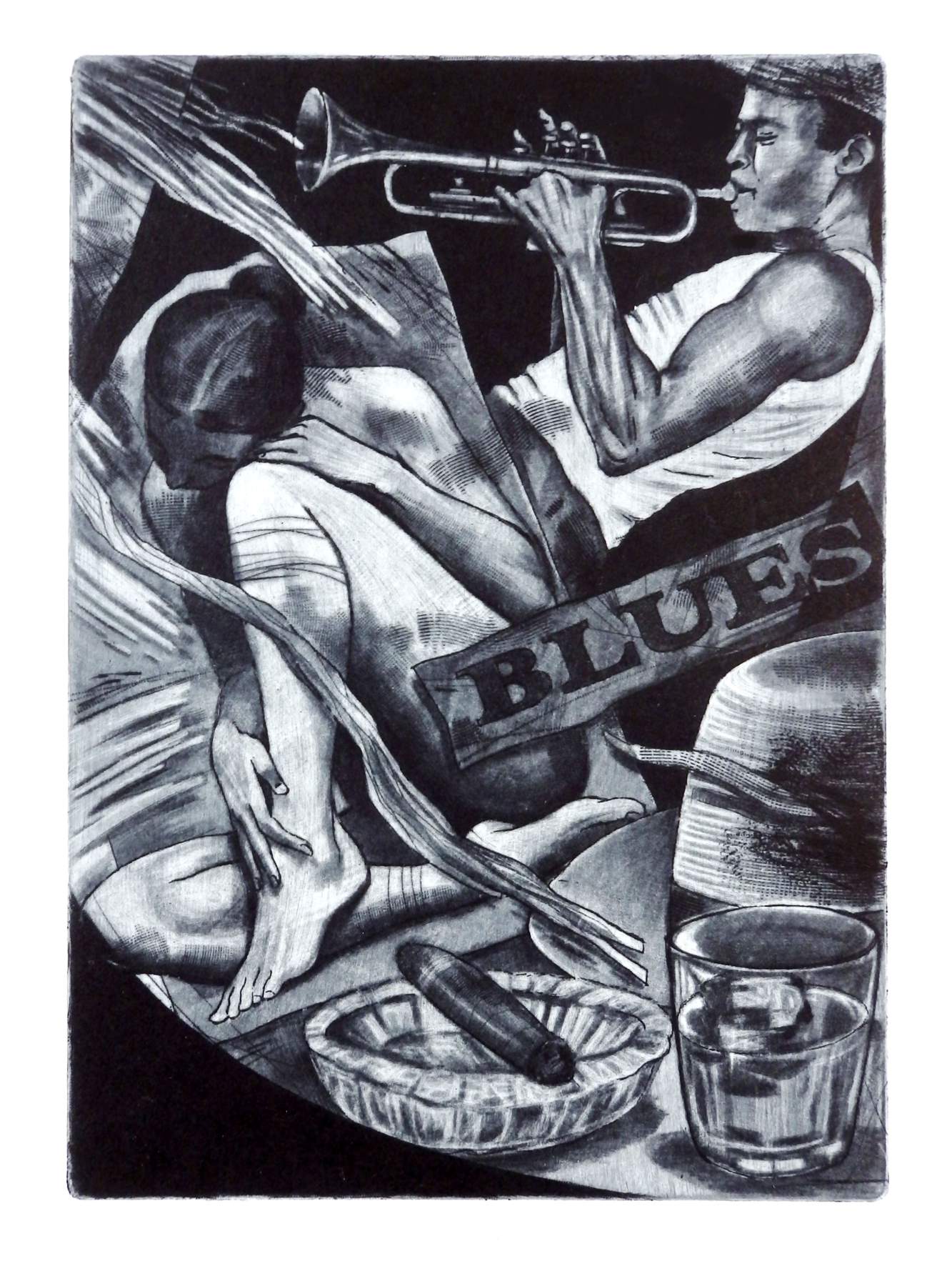 Igor Cvacho – Blues 3, lept, suchá ihla, mezzotinta, 18 x 13 cm, 2020