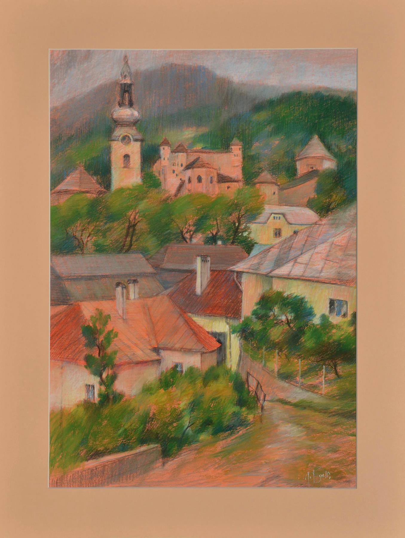 Ján Bartko – Banská Štiavnica 3 (Pod zámkom), pastel na papieri, 60 x 42 cm, 1991