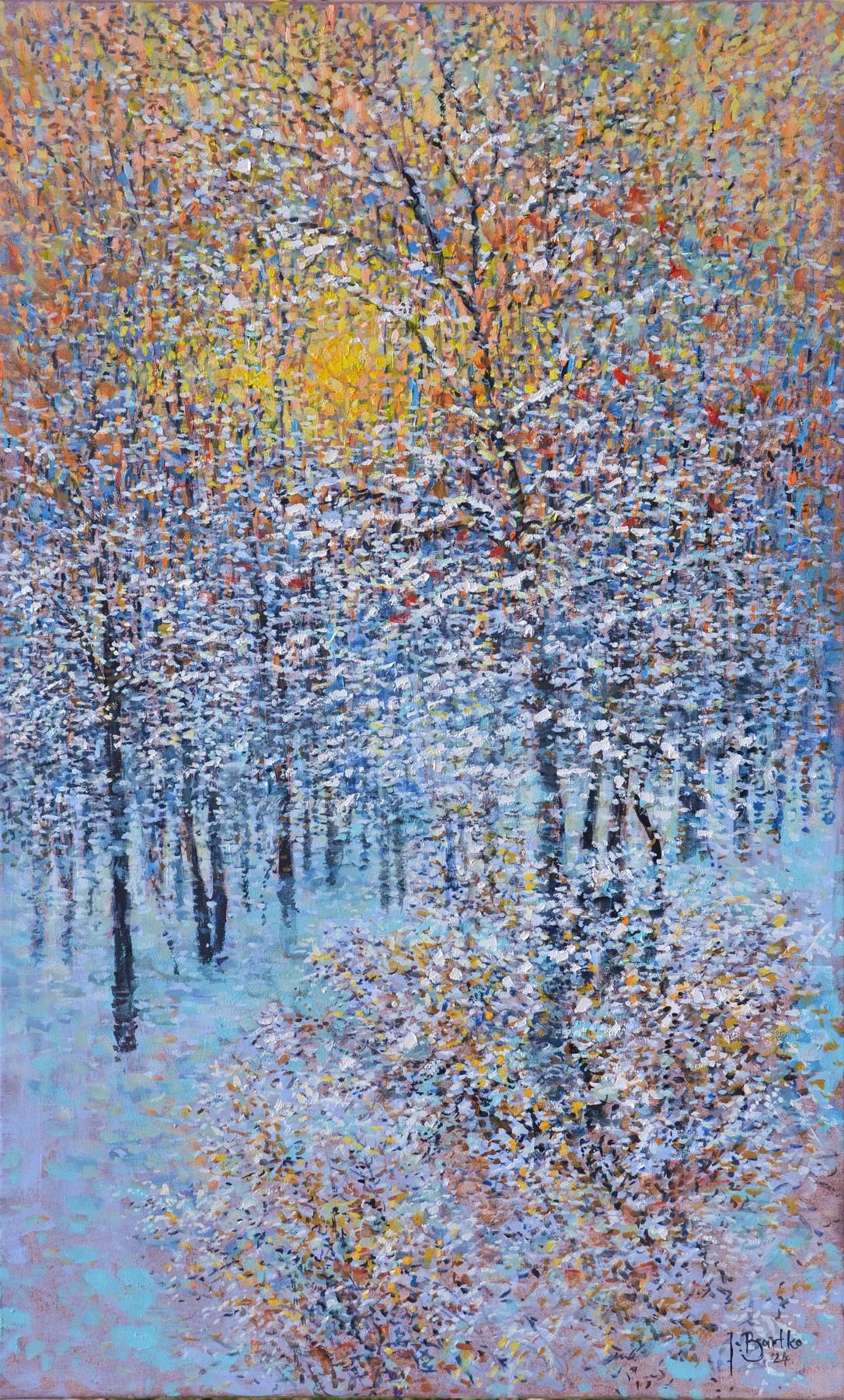 Ján Bartko – Zimný podvečer, olejomaľba na plátne, 100 x 60 cm, 2024