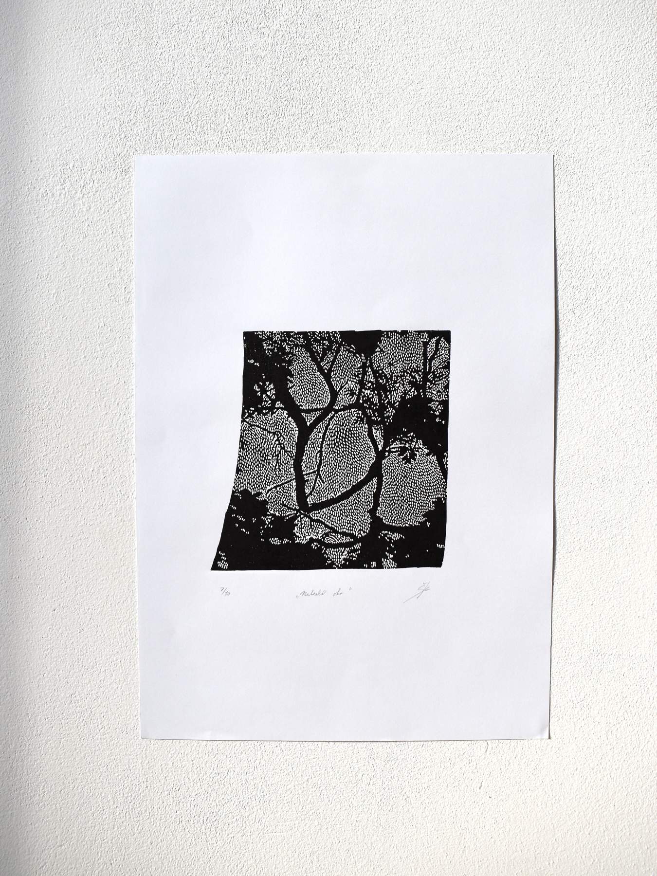 Moja tvorba je úzko spätá s prírodou a vyznačuje sa citlivým pozorovaním organických štruktúr. Pracujem prevažne s prírodnými materiálmi a technikami ako klasická grafická tlač, kresba, sieťotlač či frotáž. Viac o autorke si prečítajte v sekcii o autoroch