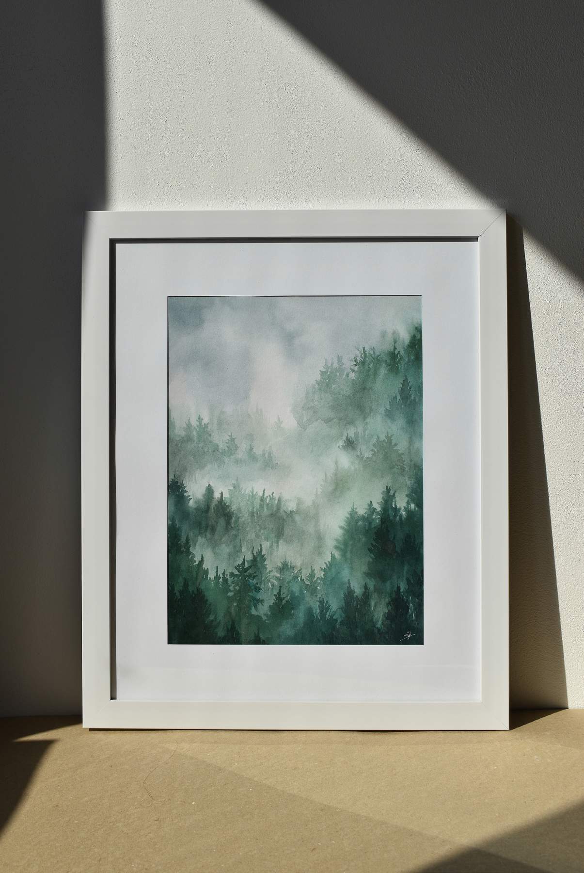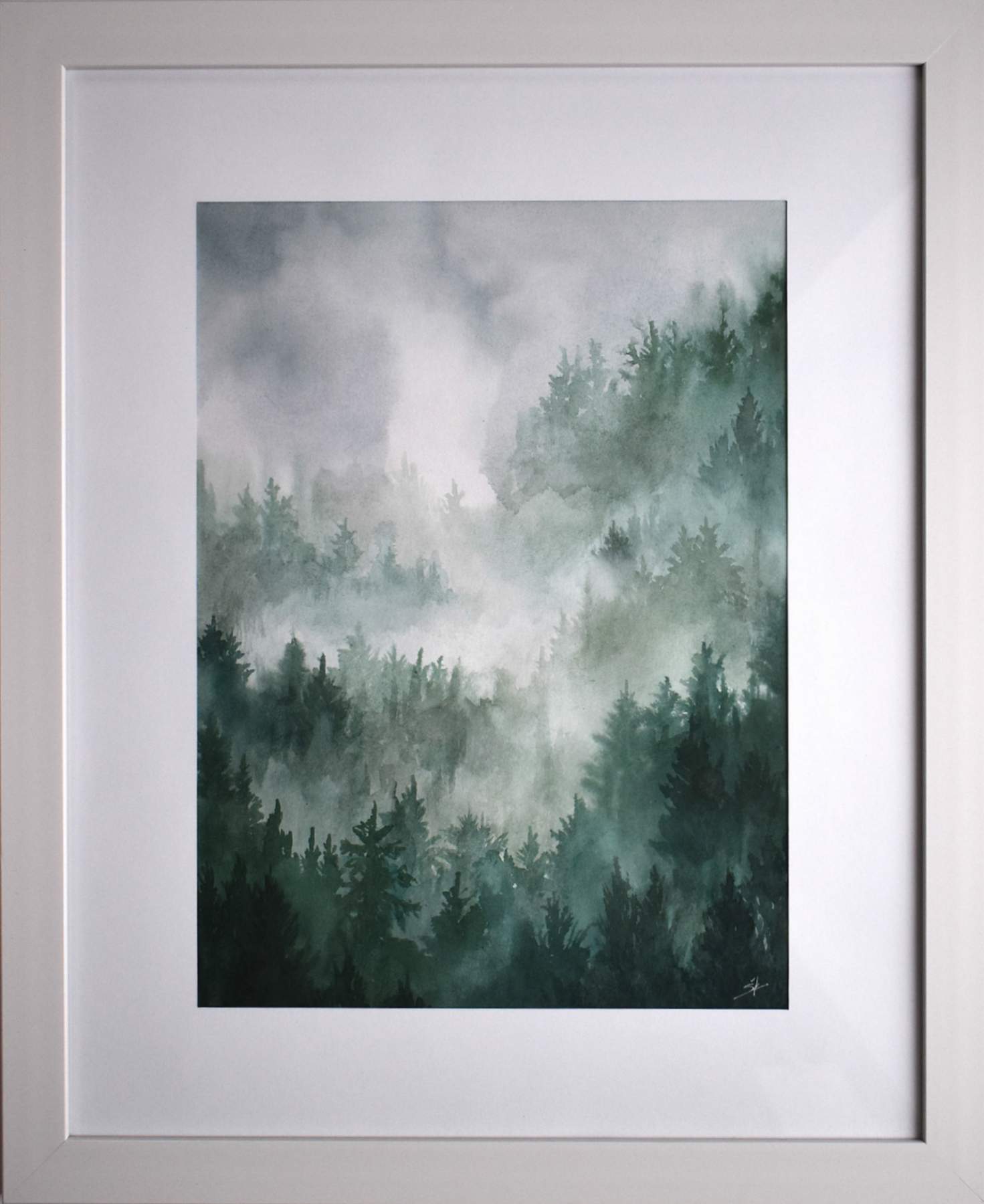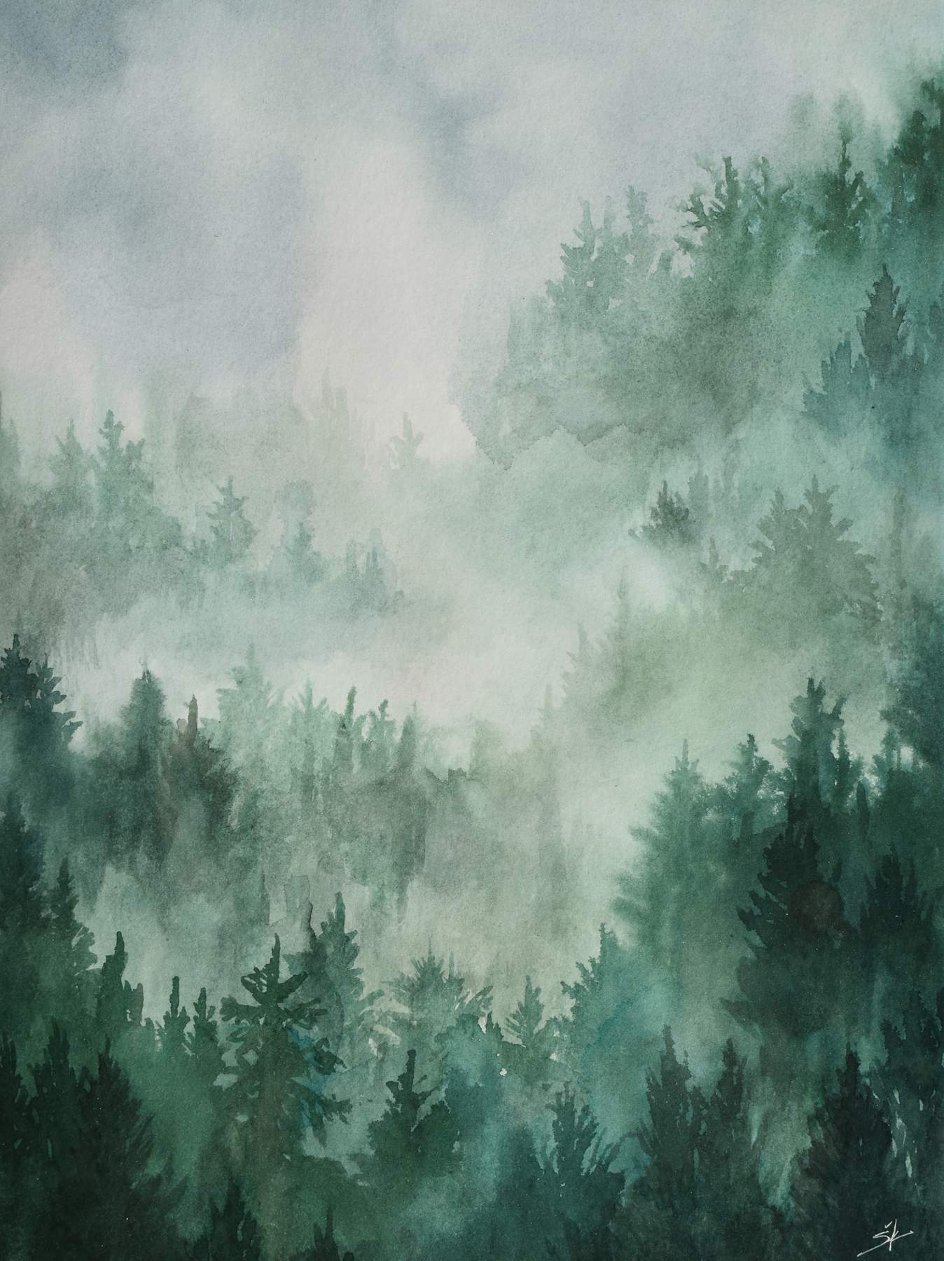 Katarína Šáleková – Ticho pod mrazivým nebom, akvarel na papieri 30 x 42 cm, 45 x 65 s rámom, 2025