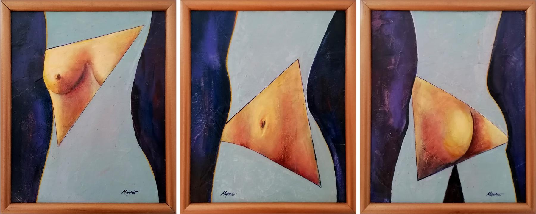 Ladislav Majoroši – Fragmenty – triptych, akryl na sololite, rozmer bez rámu 3x 37 x 30 cm, 2007