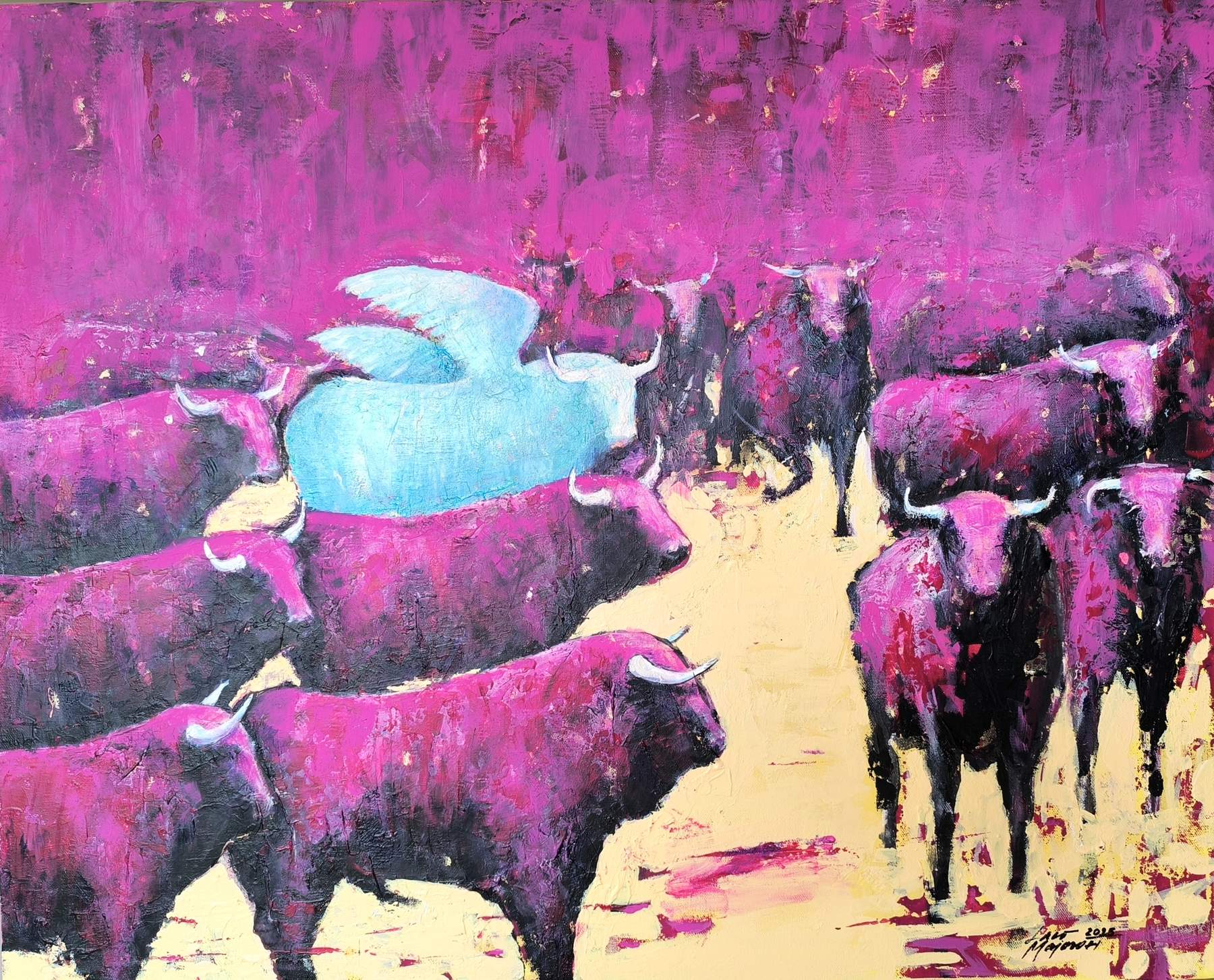 Ladislav Majoroši – V stáde, akryl na plátne, 65 x 80 cm, 2025
