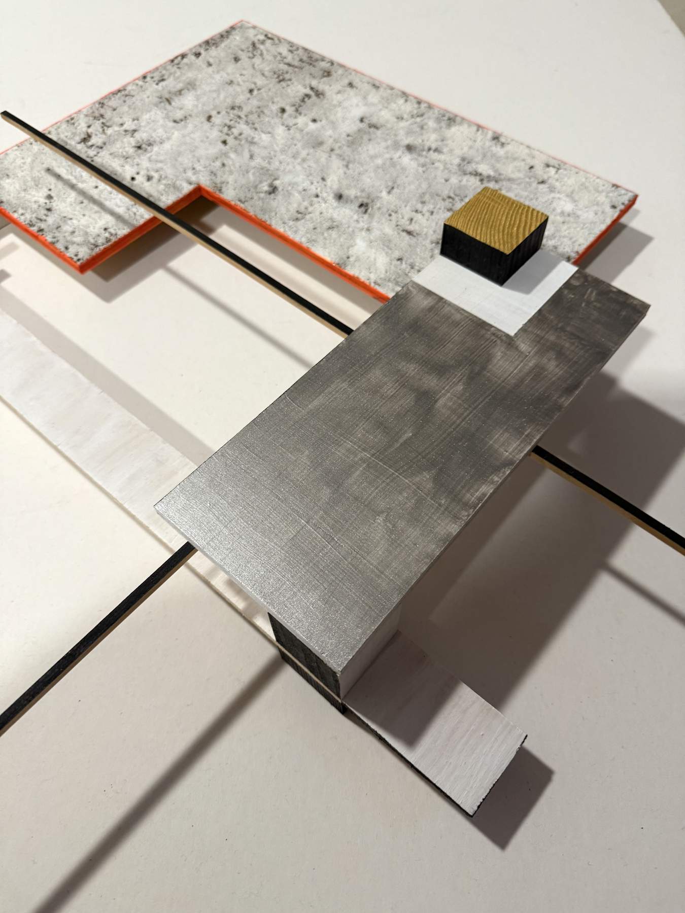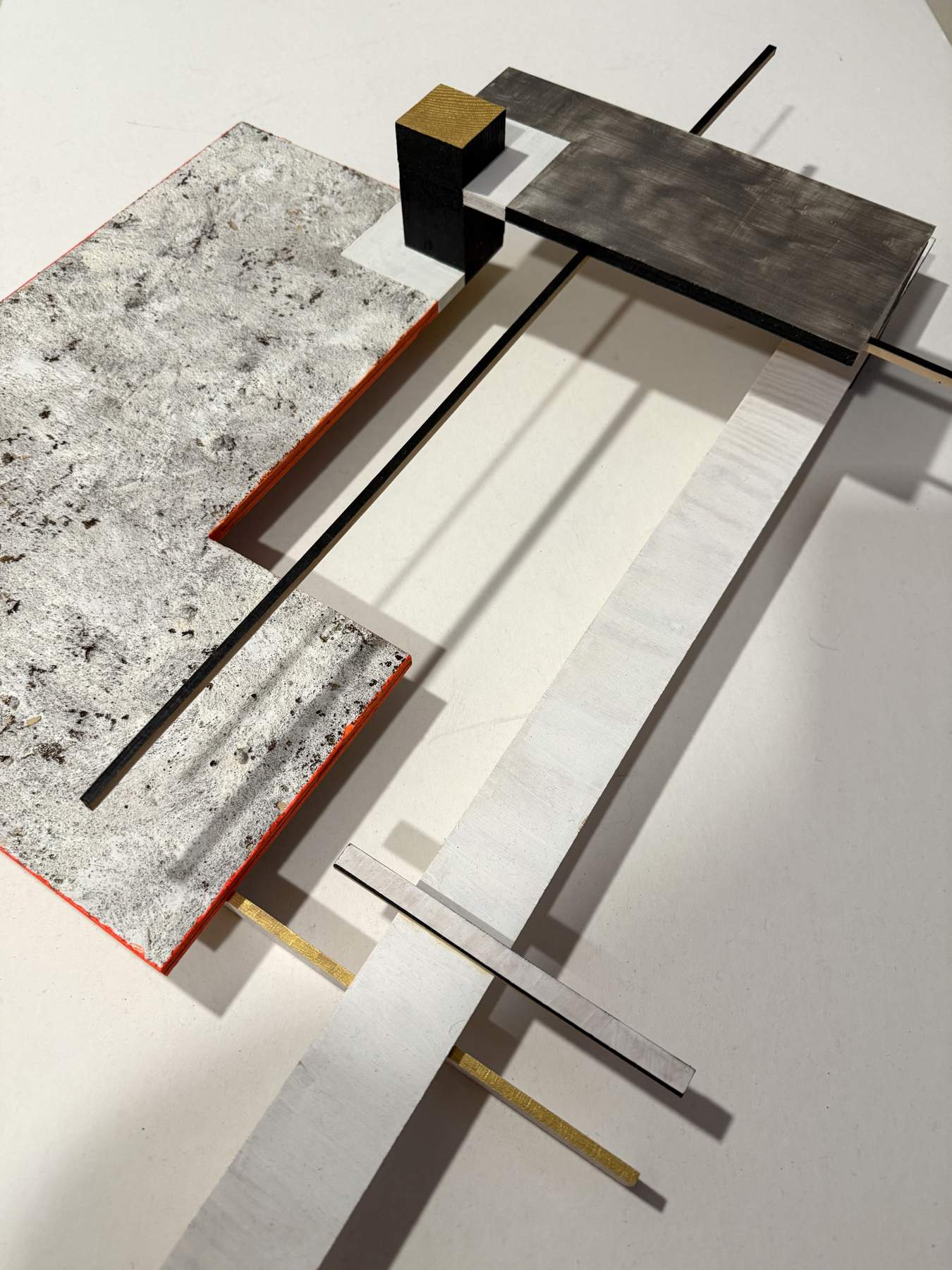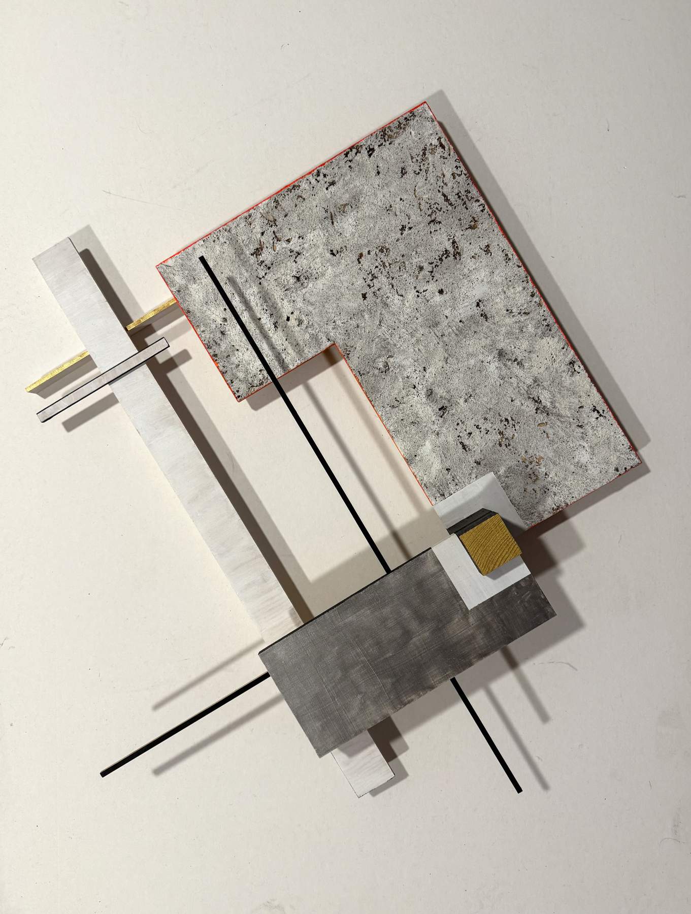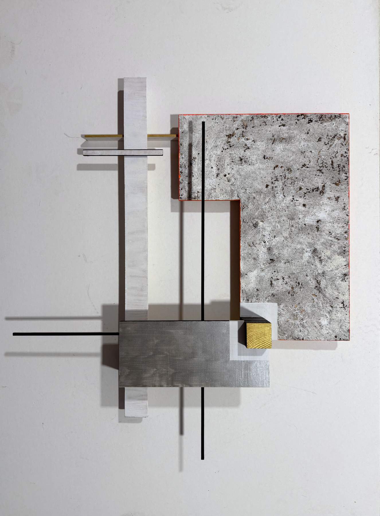 Martin Prokopovič – Geometria časopriestoru, akryl na priestorovej drevenej konštrukcii, 90 x 60 cm, 2025