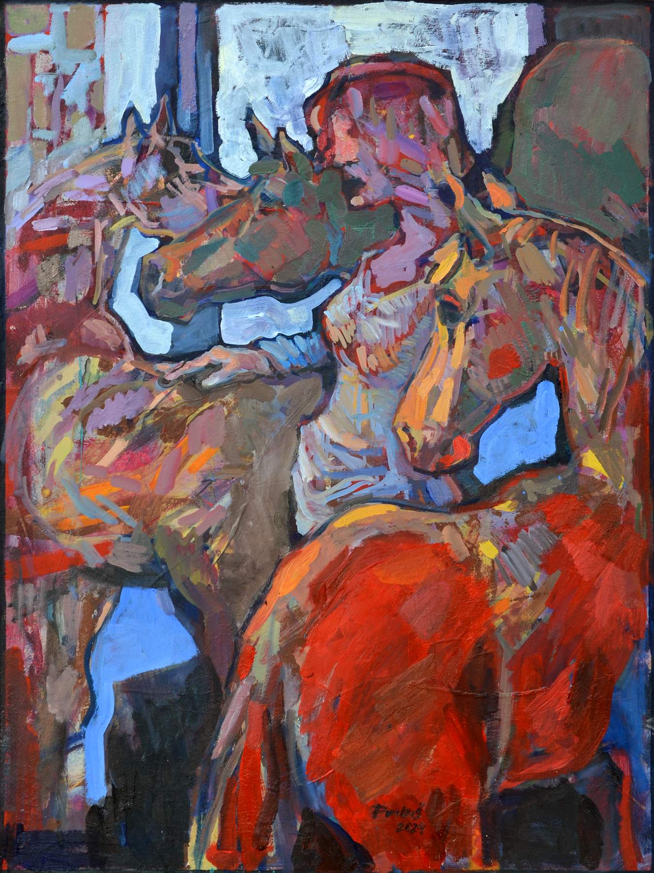 Miro Pribiš – Zaklínačka koní, olejomaľba na sololite, 60 x 45 cm, 2024