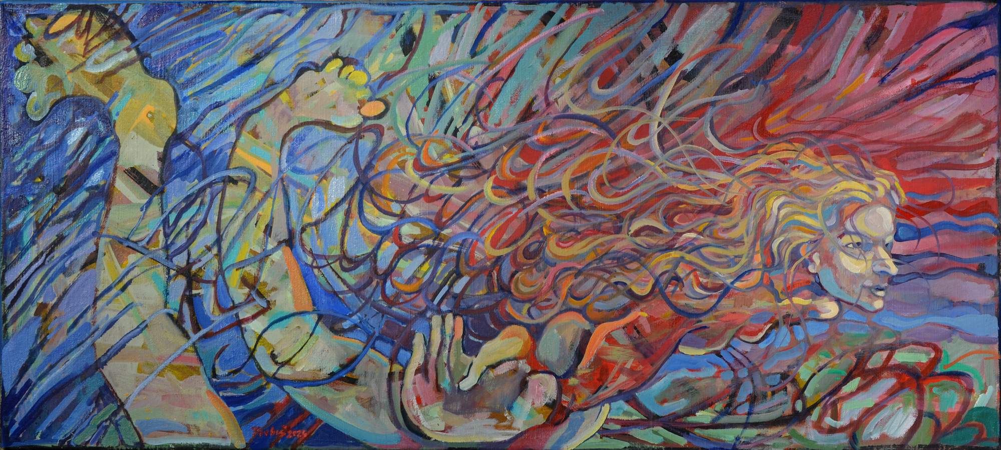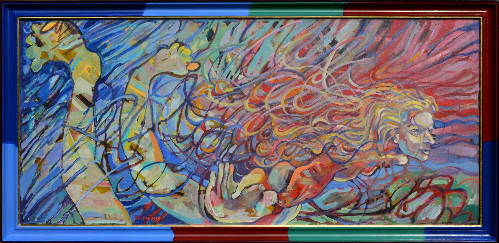 Miro Pribiš – Zornička, olejomaľba na plátne, 45 x 100 cm, 51,5 x 106,5 s rámom, 2024