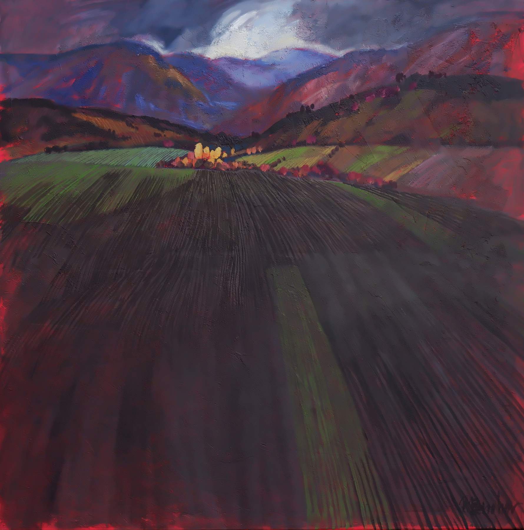 Miroslav Bucher – Portrét zeme – A zas polia, olejomaľba na plátne, 100 x 100 cm