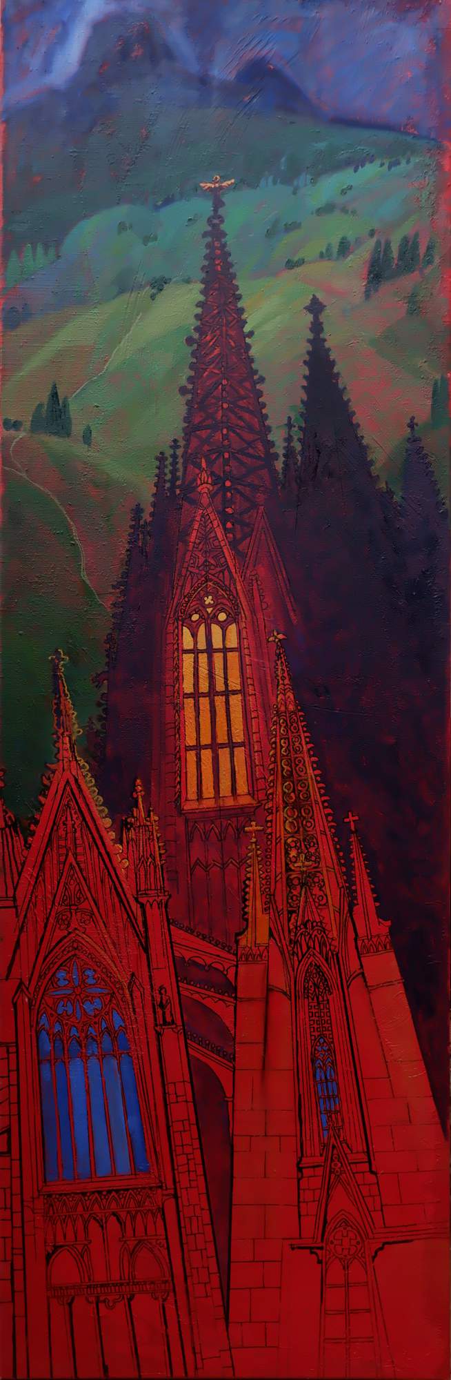 Miroslav Bucher – Portrét zeme – Chrámy, olejomaľba na plátne, 200 x 65 cm