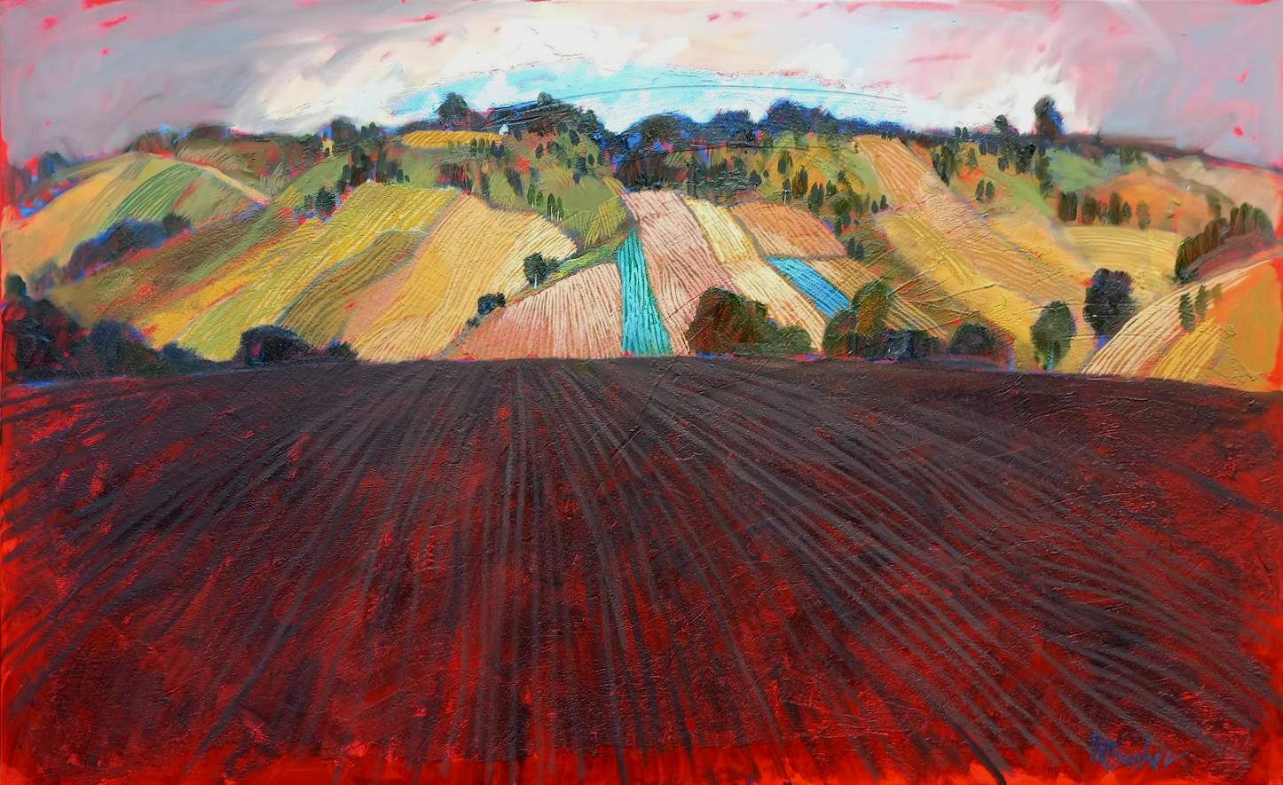Miroslav Bucher – Portrét zeme – Na poli, olejomaľba na plátne, 80 x 130 cm