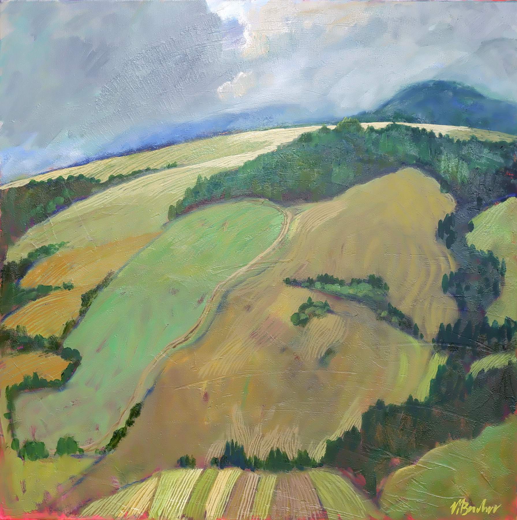 Miroslav Bucher – Portrét zeme – Predzvesť, olejomaľba na plátne, 80 x 80 cm