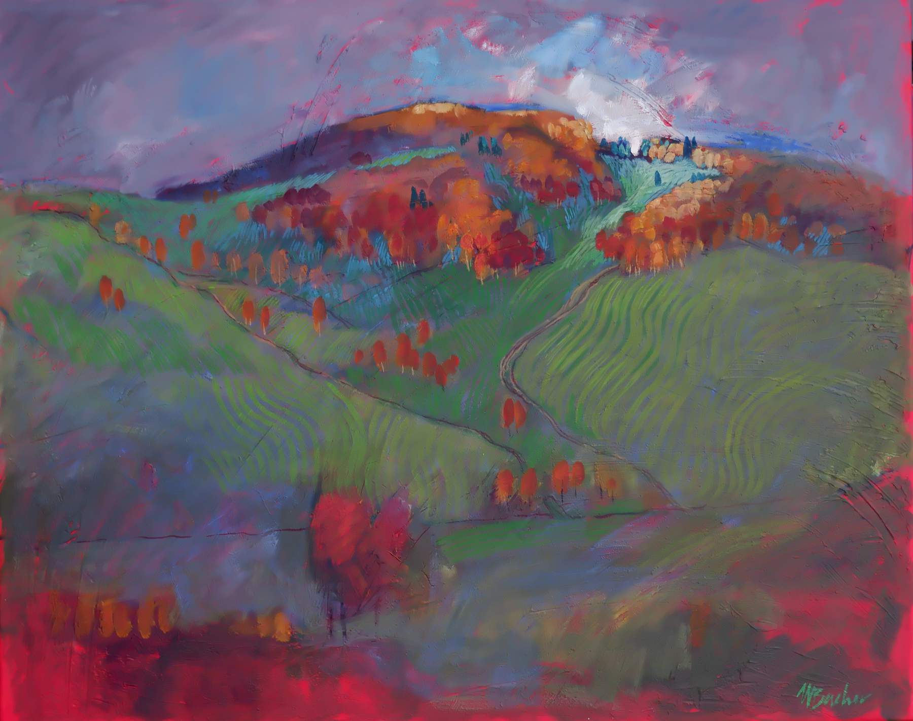 Špecifikum a hodnota krajinárskej tvorby maliara Miroslava Buchera spočíva paradoxne v tom, že krajina v jeho poňatí je predovšetkým obrazom zeme v užšom zmysle slova. Pojem konkrétnej krajiny sa uňho nekryje s topografickou vecnosťou a presnosťou, relevantným prvkom, ktorý určuje povahu genia loci a zároveň spája všetky konkrétne krajinné organizmy je zem, pôda. A práve vnútorné ústrojenstvo krajiny, skôr tušené než videné, dáva maliarovi pocit umeleckej slobody a umeleckej licencie. Viac o autorovi si prečítajte v sekcii o autoroch