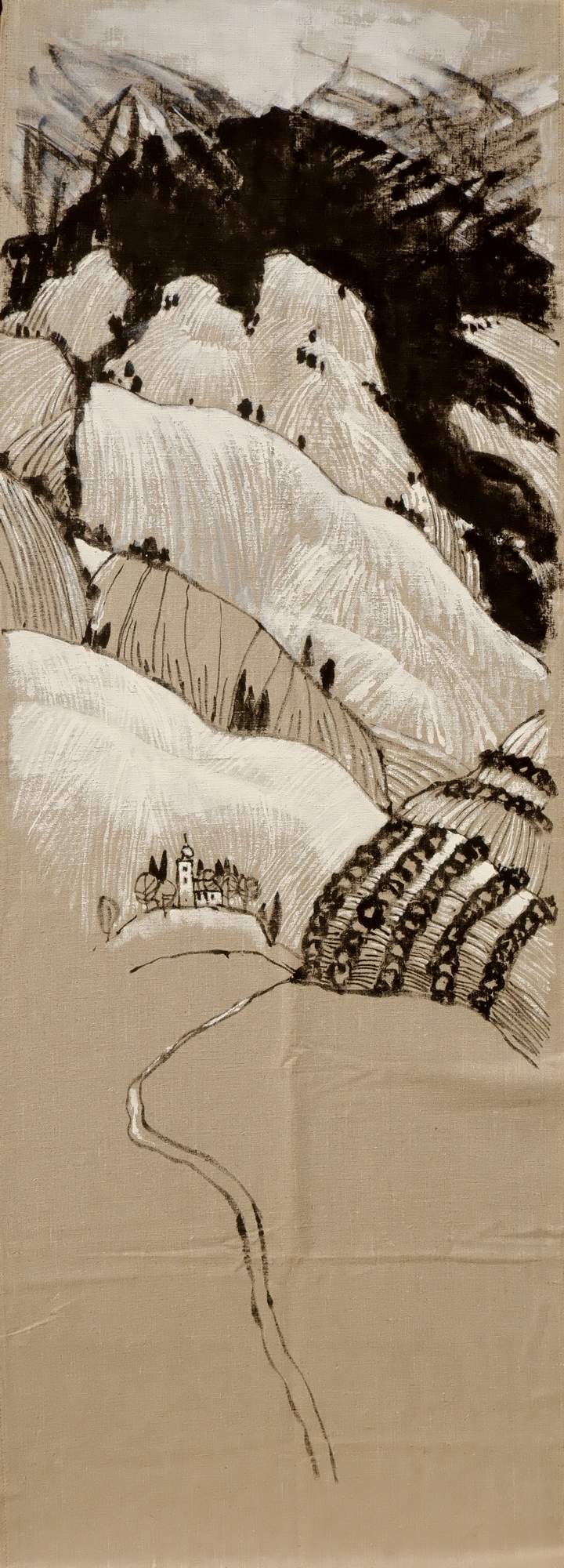 Miroslav Bucher – Portrét zeme – V snehu, kombinovaná technika, 200 x 72 cm