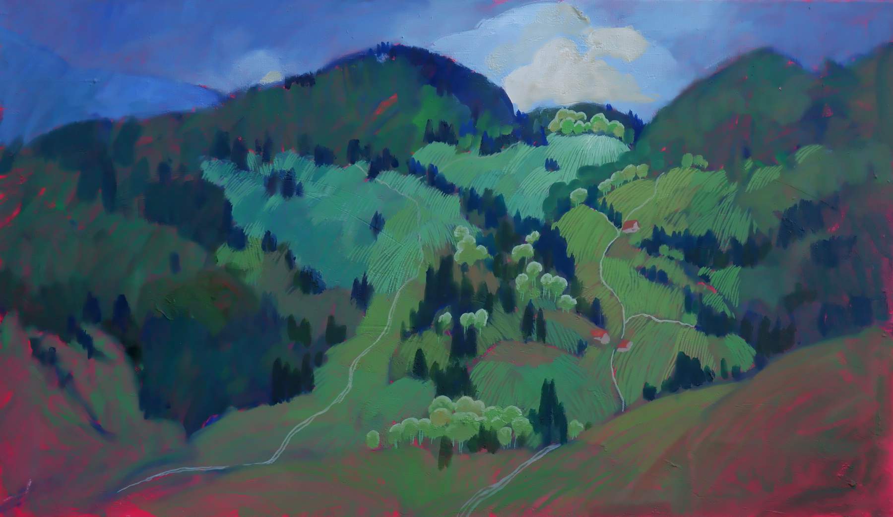 Miroslav Bucher – Portrét zeme – Z iného miesta, olejomaľba na plátne, 70 x 120 cm