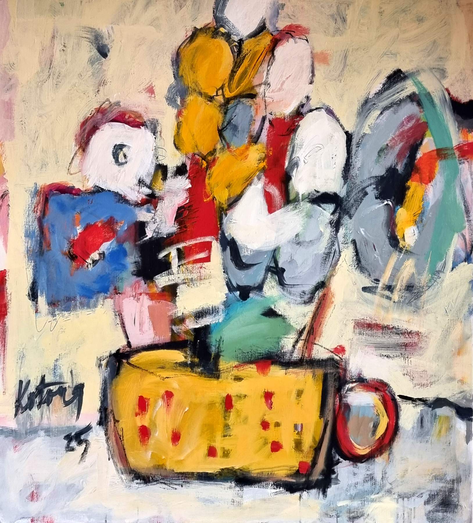 Miroslav Kotora – Large flowers 1, akryl na plátne, 115 x 110 cm, 2025