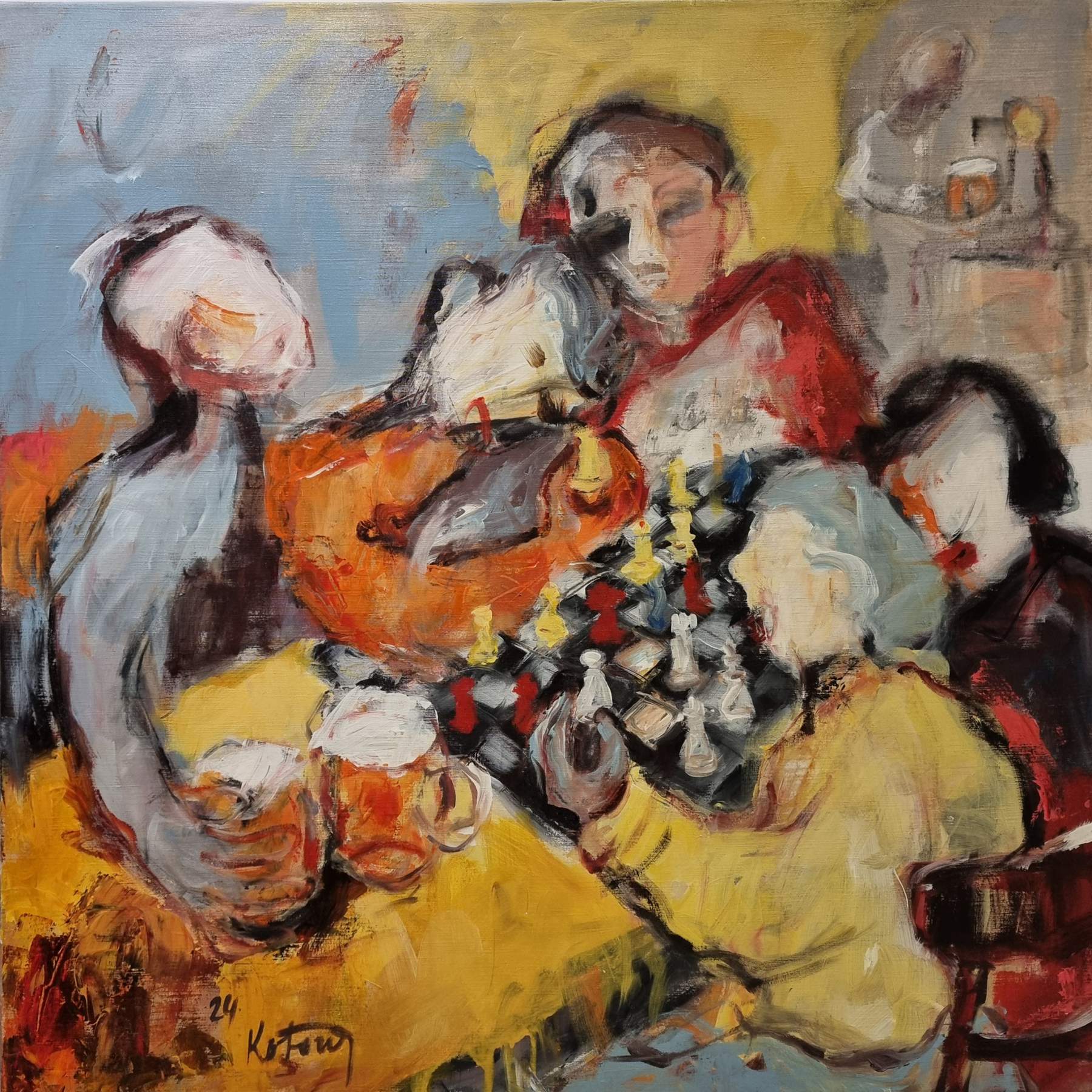 Miroslav Kotora – Šach pre štyroch, akryl na plátne, 120 x 120 cm, 2024