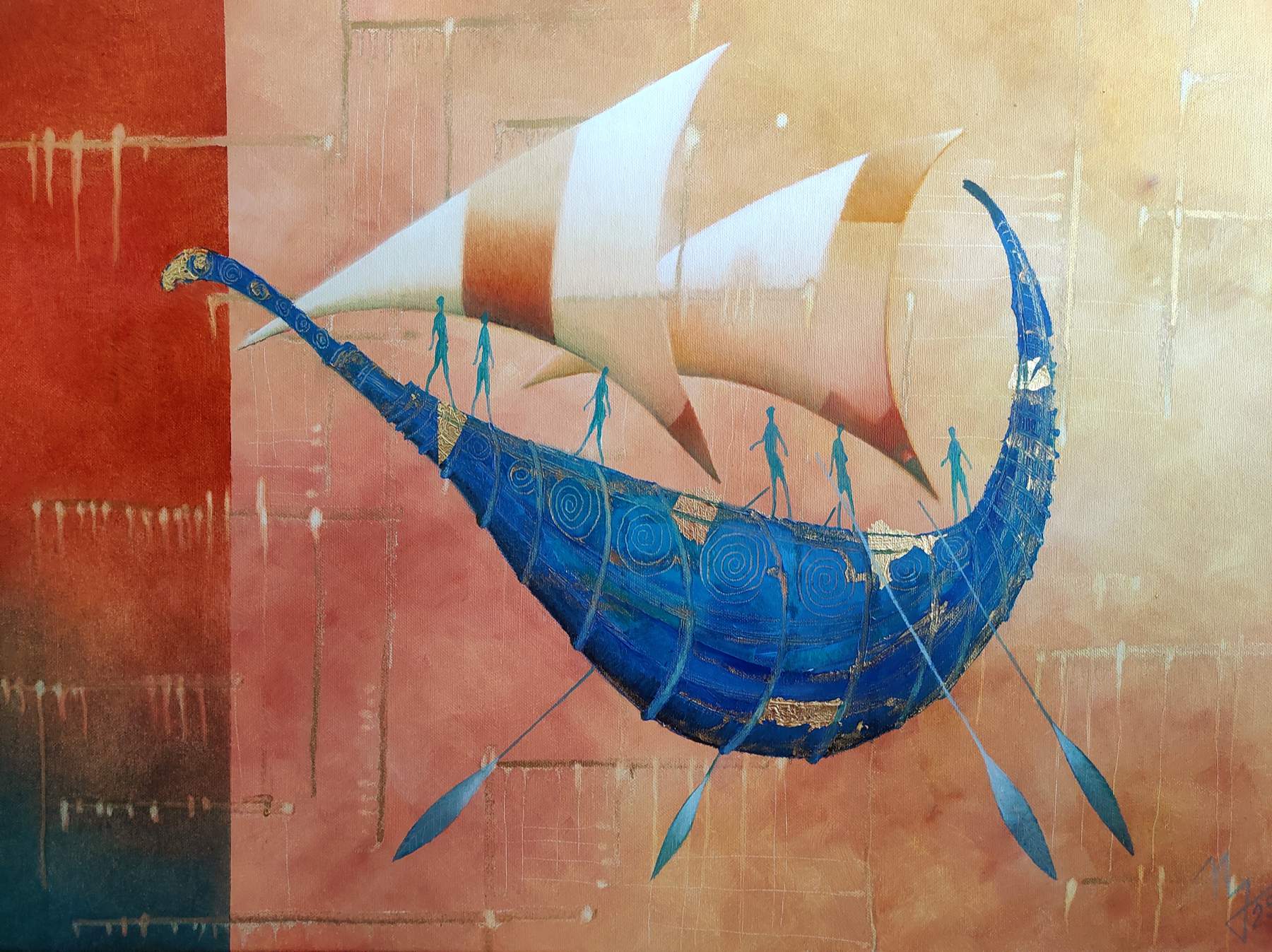 Norbert Judt – Čas nádejí, kombinovaná technika na plátne, 50 x 70 cm, 2025