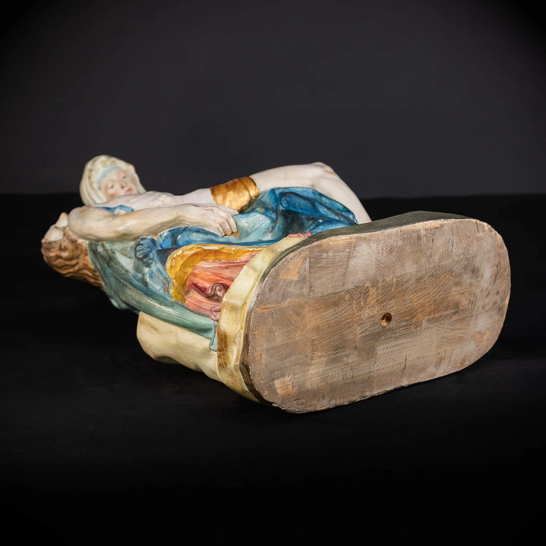 Nádherná vintage drevená socha z polovice 20. storočia zobrazujúca Pietu – Pannu Máriu, ktorá zviera mŕtve telo Ježiša.