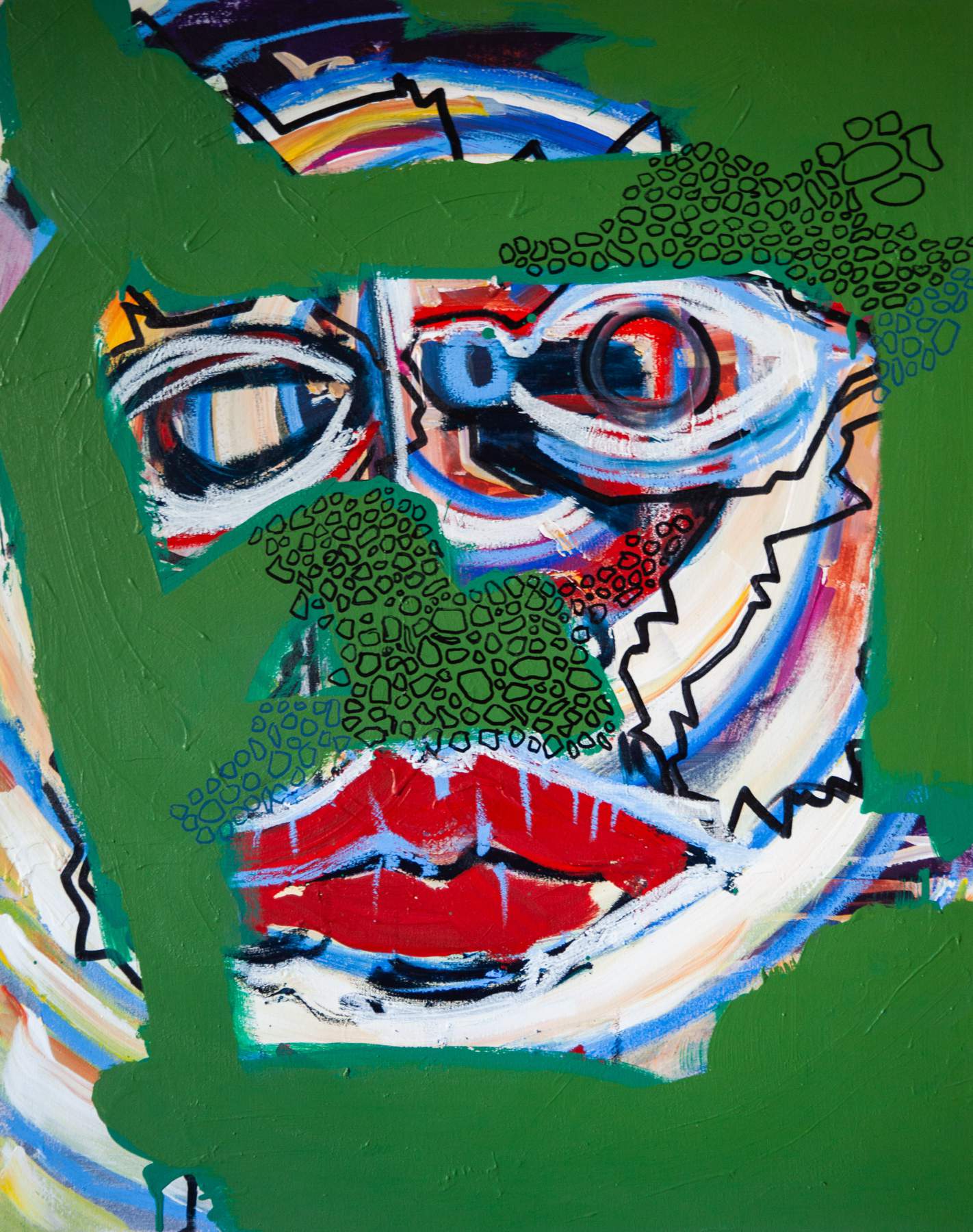 Tomaš Bokor – Kruhy vo vode, akryl, olej, tuš na plátne, 100 x 80 cm, 2024