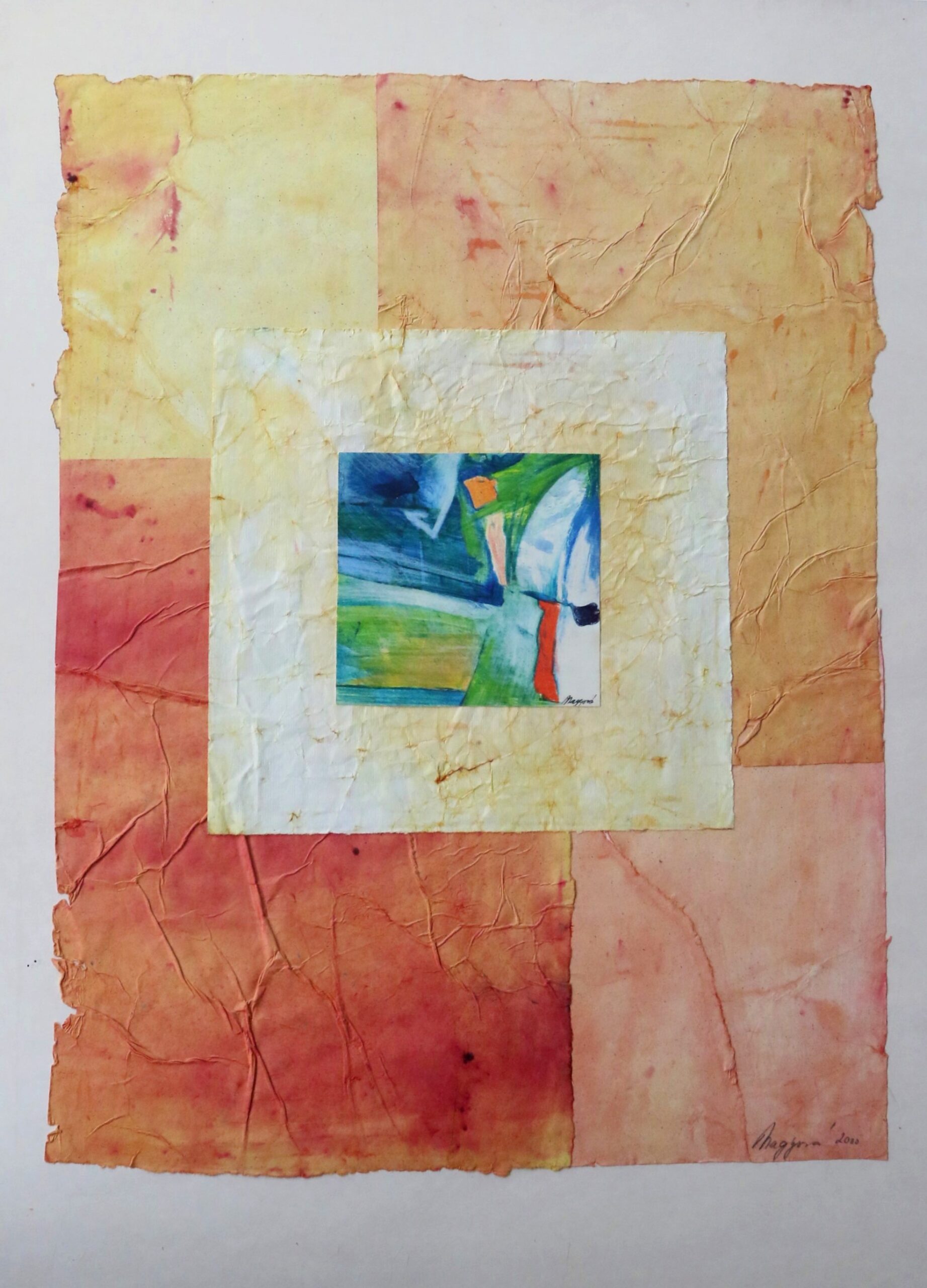 Marcela Nagyová-Ľudrovanová – V zajatí ohňa, papierová koláž v kombinácii s maľbou akrylom, 55 x 43 cm, 2000